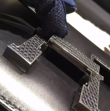 ZELDZAME Hermes Mini Constance 18cm Lizard Box Kalfsleer Palladium Hardware Handgestikt, Noir CK89 RS16457