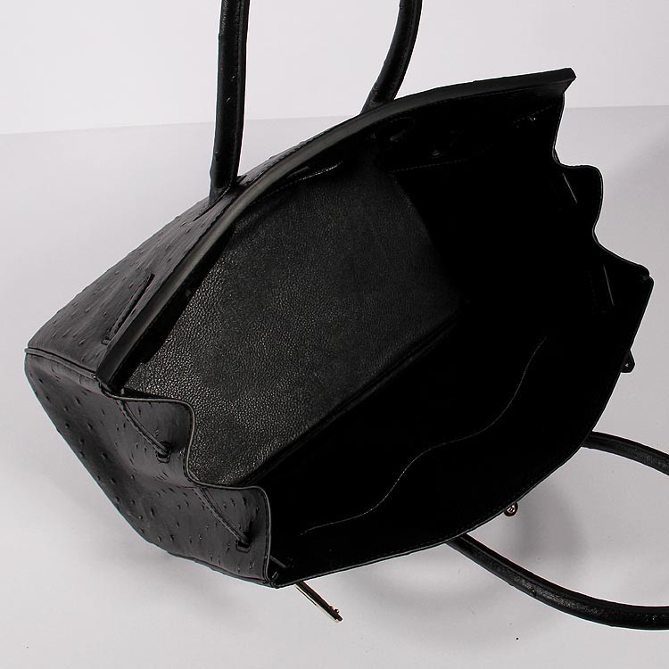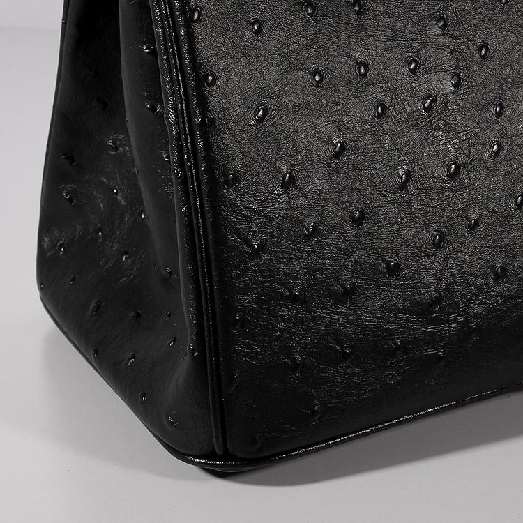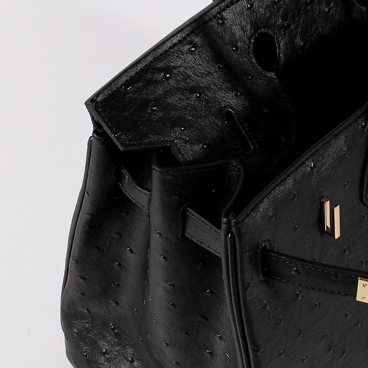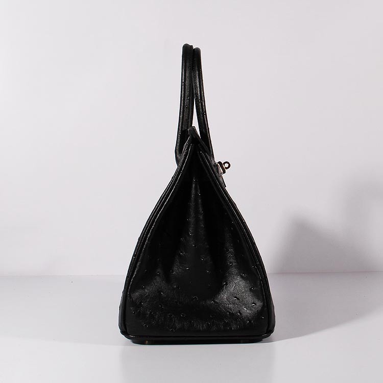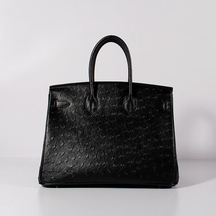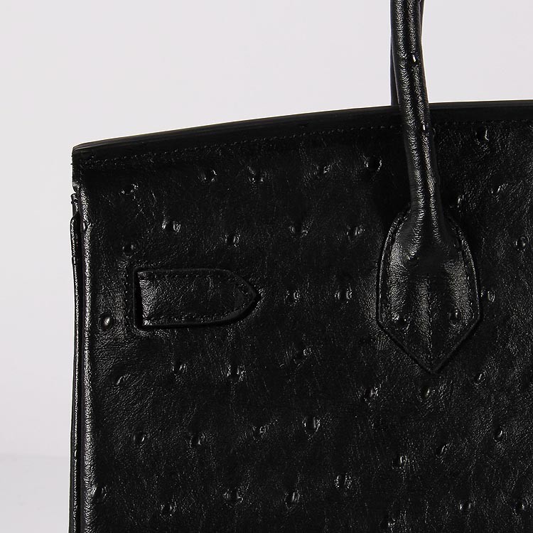 Hermes Birkin 35cm struisvogel lederen tas zwart goud