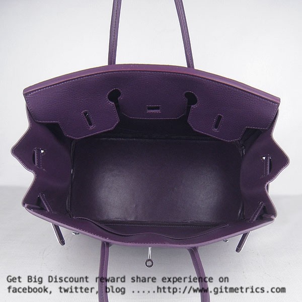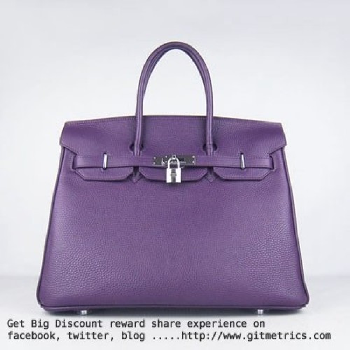 Hermes Birkin 35cm Togo lederen handtassen paars zilver
