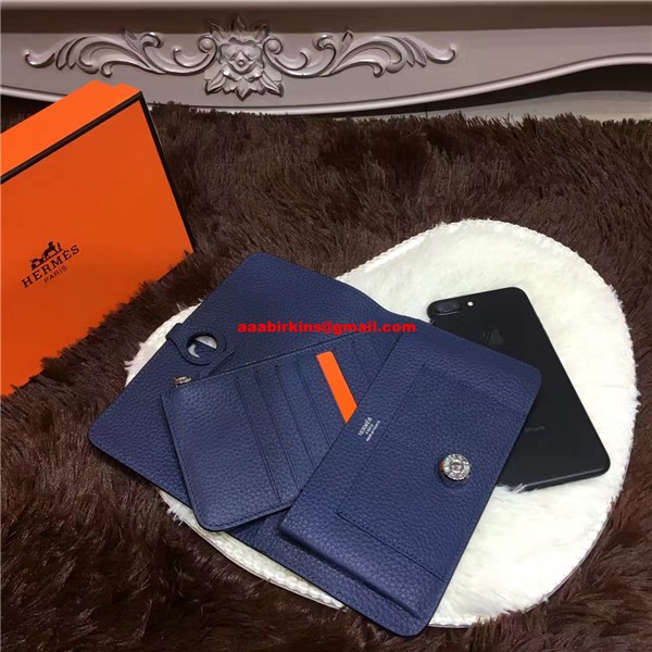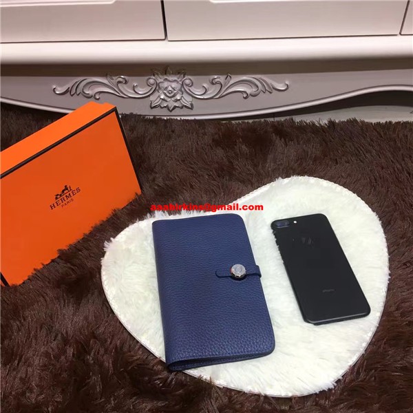 Hermes Dogon Portemonnee Togo Leer H001 Donkerblauw