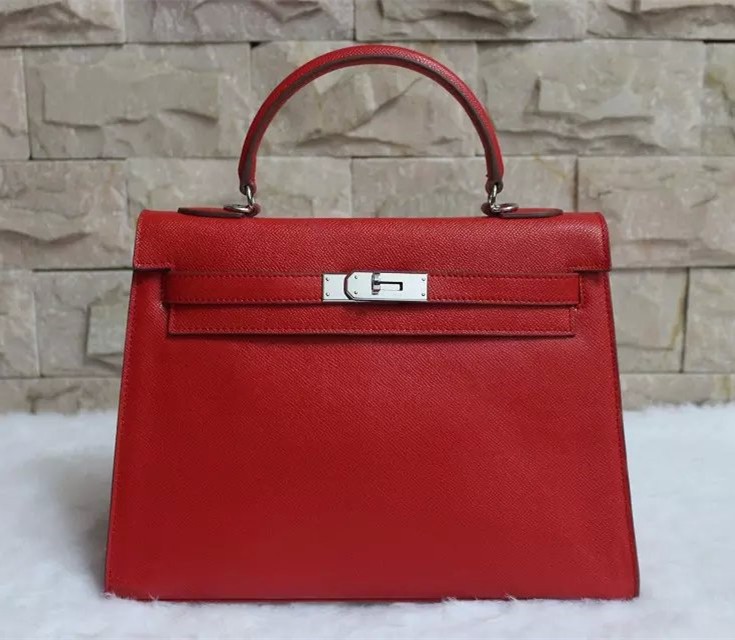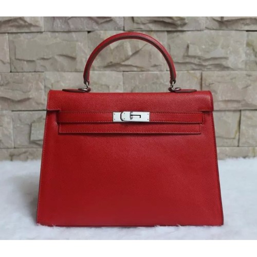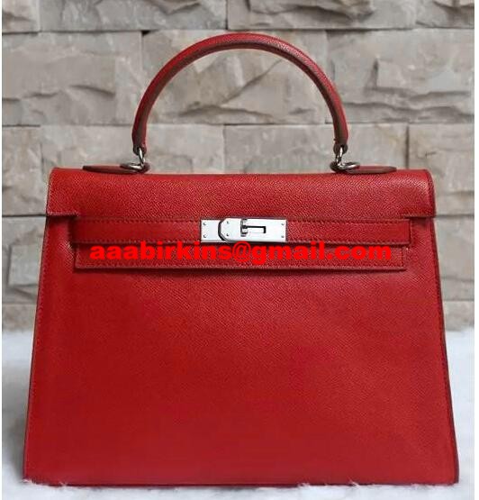 Hermes Kelly 32cm Epsom lederen handtas rood zilver