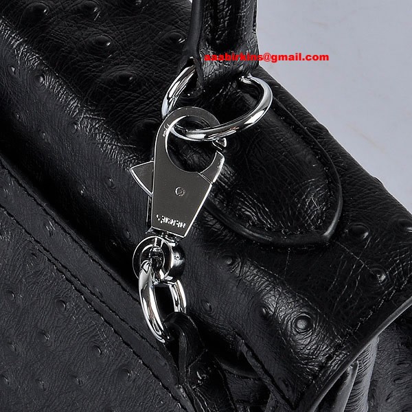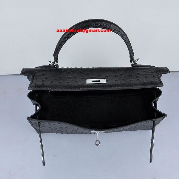 Hermes Kelly 32cm Struisvogelader 6108 Zwart Zilver