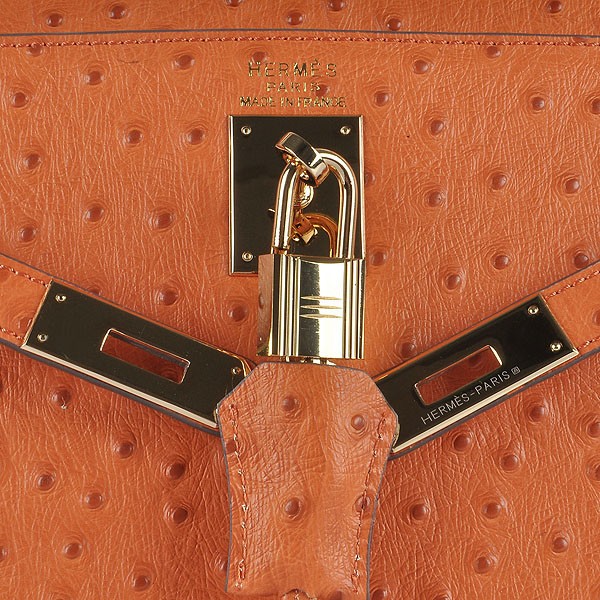 Hermes Kelly 32cm Struisvogelader 6108 Oranje Gouden