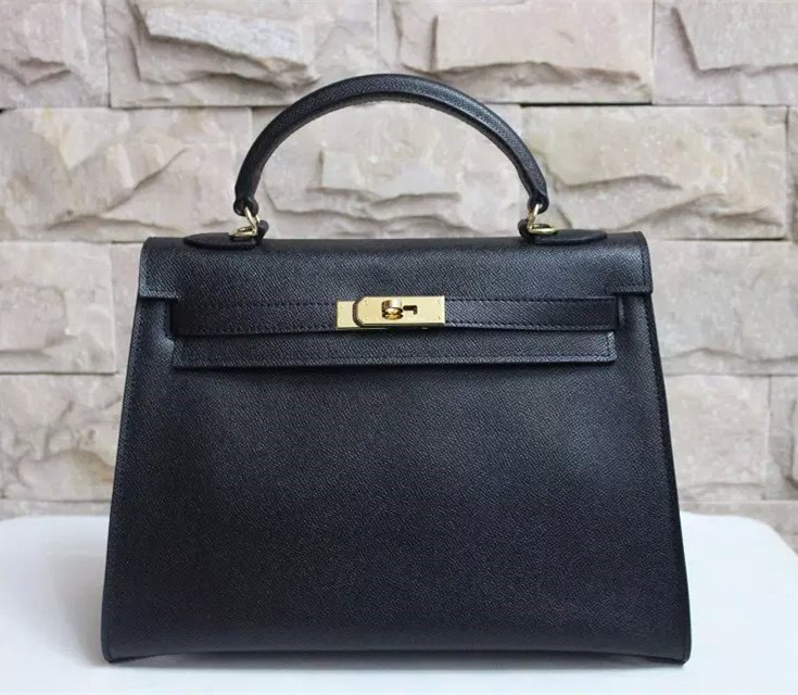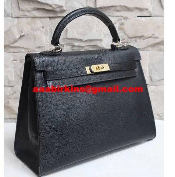 Hermes Kelly 32cm Epsom lederen handtas zwart goud