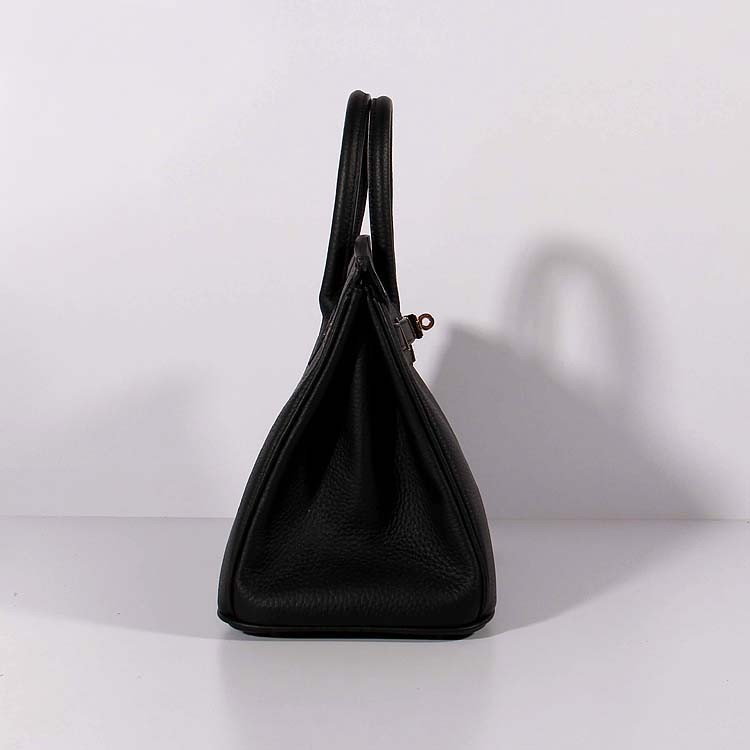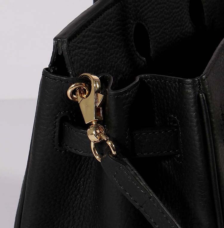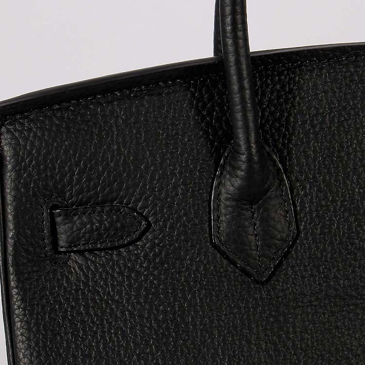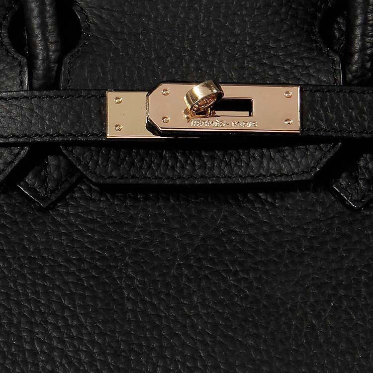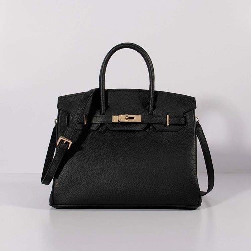 Hermes 30cm Birkin tas Togo leer met riem zwart goud