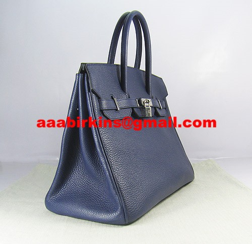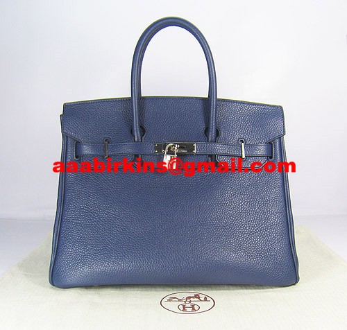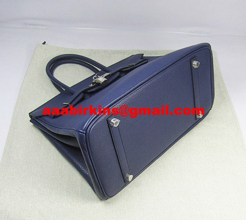 Hermes Birkin 35cm Togo lederen handtassen donkerblauw zilver