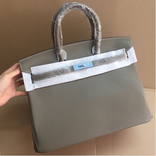 Hermes Birkin 35cm runderhuid ader Handtassen kaki zilver