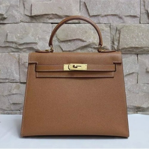Hermes Kelly 28cm Epsom lederen handtas bruin goud