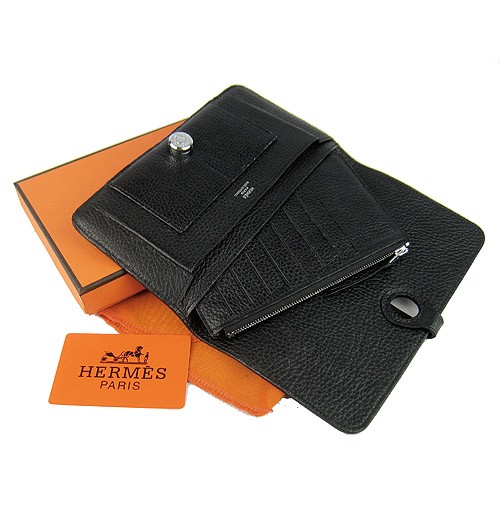 Hermes Dogon Portemonnee Togo Leer H001 Zwart
