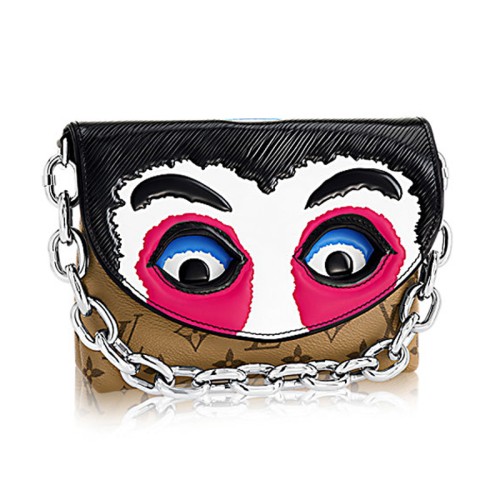 Kleurrijke Kabuki-maskers van de Cruise 18-modeshow sieren deze opvallende pochette. Gemaakt van reliëf Epi-leer in combinatie met Reverse Monogram-canvas, is het een trendy accessoire dat geschikt is voor zowel overdag als 's avonds.